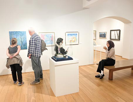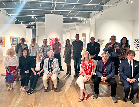 先日、崩御なさった女王エリザベス2世の即位70周年を記念する「プラチナ・ジュビリー」で祝賀ムードだったロンドンで、8月24日、本展の開会を祝したセレモニーが開かれ、会場にお越しになった英国王立美術家協会(RBA)会長のミック・デイヴィス氏を始めとする10名のボードメンバーに作品をご覧いただきました。
